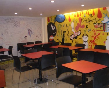 Comic Wall– Instead of traditional wall art, we plastered the walls with comic strips. These weren’t just fun to read—they sparked nostalgia and gave everyone something to smile about.